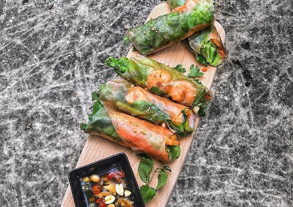 - Cuối cùng là cuốn các nguyên liệu cùng bún gạo lứt, chấm và thưởng thức.