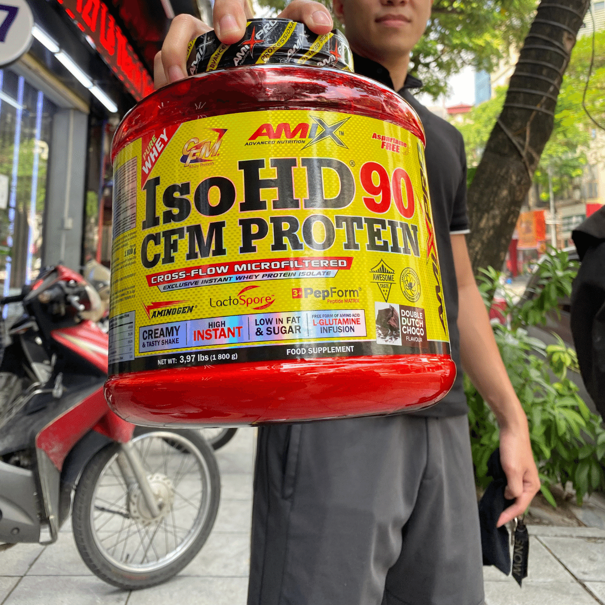 - Amix IsoHD chứa nguồn whey chất lượng - whey protein CFM cao cấp (CFM cao cấp là áp dụng hệ thống vi lọc dòng chảy đây là một quy trình công nghệ tiên tiến với quá trình chiết xuất tự nhiên, nhiệt độ thấp giúp tạo ra 1 loại protein không biến tính và giữ được hương vị đồng thời có hoạt tính sinh học cao)