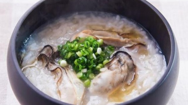- Gạo tẻ cho vào nồi ninh nhừ sau đó cho thịt hàu và thịt trai vào nấu cùng, thêm gia vị vừa ăn.
