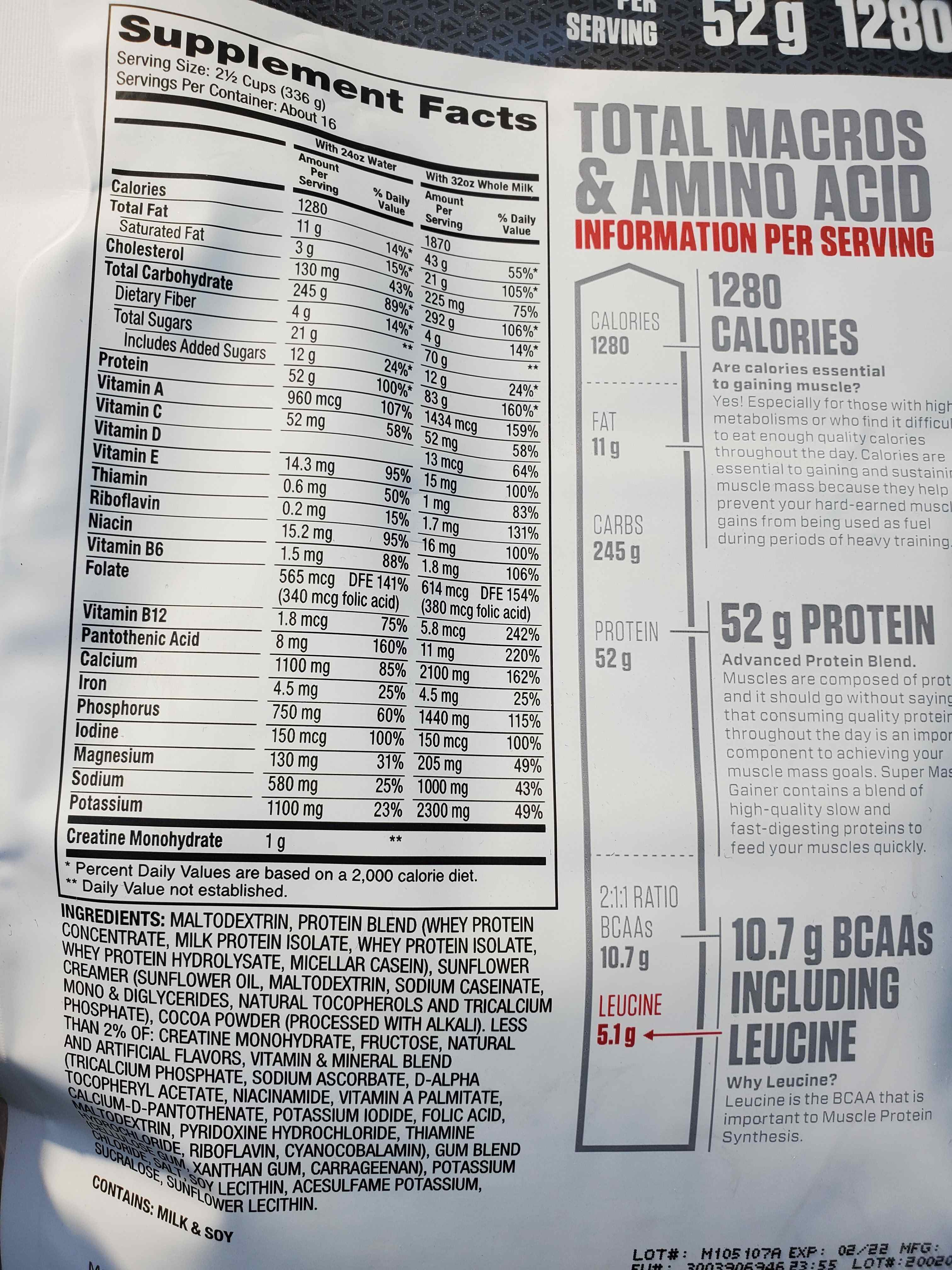 Nutrition Facts Super Mass Gainer 12lbs