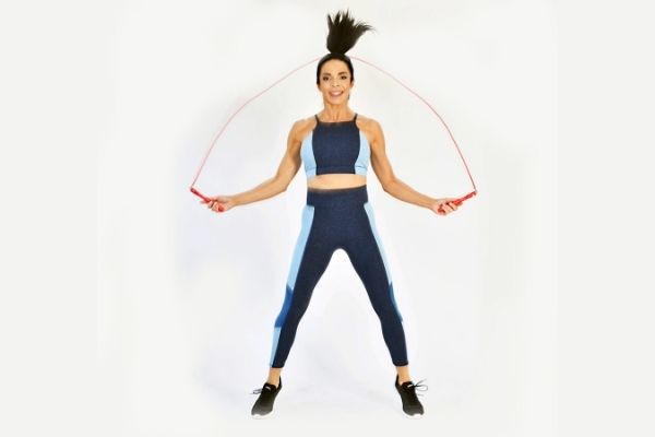 Các động tác nhảy dây xoạc chân cũng giống như khi nhảy dây bằng hai chân. Chỉ khác là sau khi vào nhịp, bạn sẽ cần bật nhảy 2 chân rộng sang 2 bên bên rồi thu hẹp 2 chân lại.