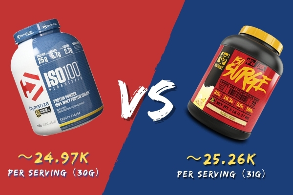 Nhìn chung, giá thành của Iso 100 và Iso Surge là gần như tương đương nhau. Dao động từ 1.800.000 VNĐ tới hơn 2.000.000 VNĐ cho một hũ dung tích 5lbs (~2.27kg) tuỳ nơi bán.